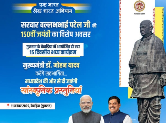 *सरदार वल्लभभाई पटेल यांच्या सार्ध शताब्दी वर्षानिमित्त, केवडिया (गुजरात) येथे महाराष्ट्राचा चित्ररथ, 1 ते 15 नोव्हेंबर 2025 दरम्यान केवडिया गुजरात येथे होणाऱ्या भारत पर्व महोत्सवात, महाराष्ट्र शासनाच्या सांस्कृतिक कार्य विभागाचा